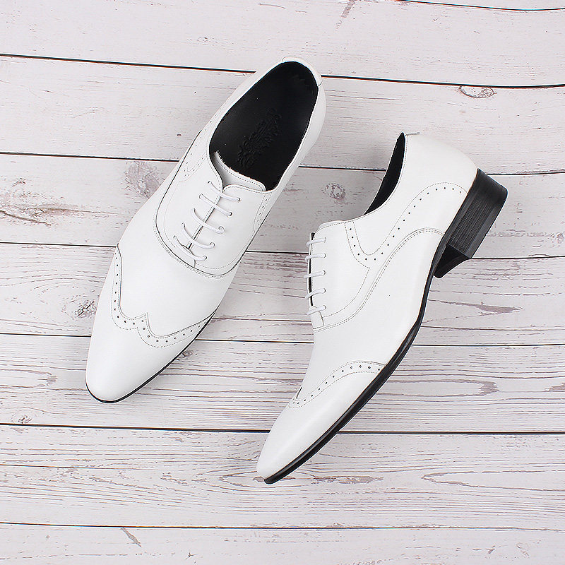 男士西装皮鞋英伦风布洛克潮流帅气男鞋结婚新郎鞋真皮休闲小白鞋