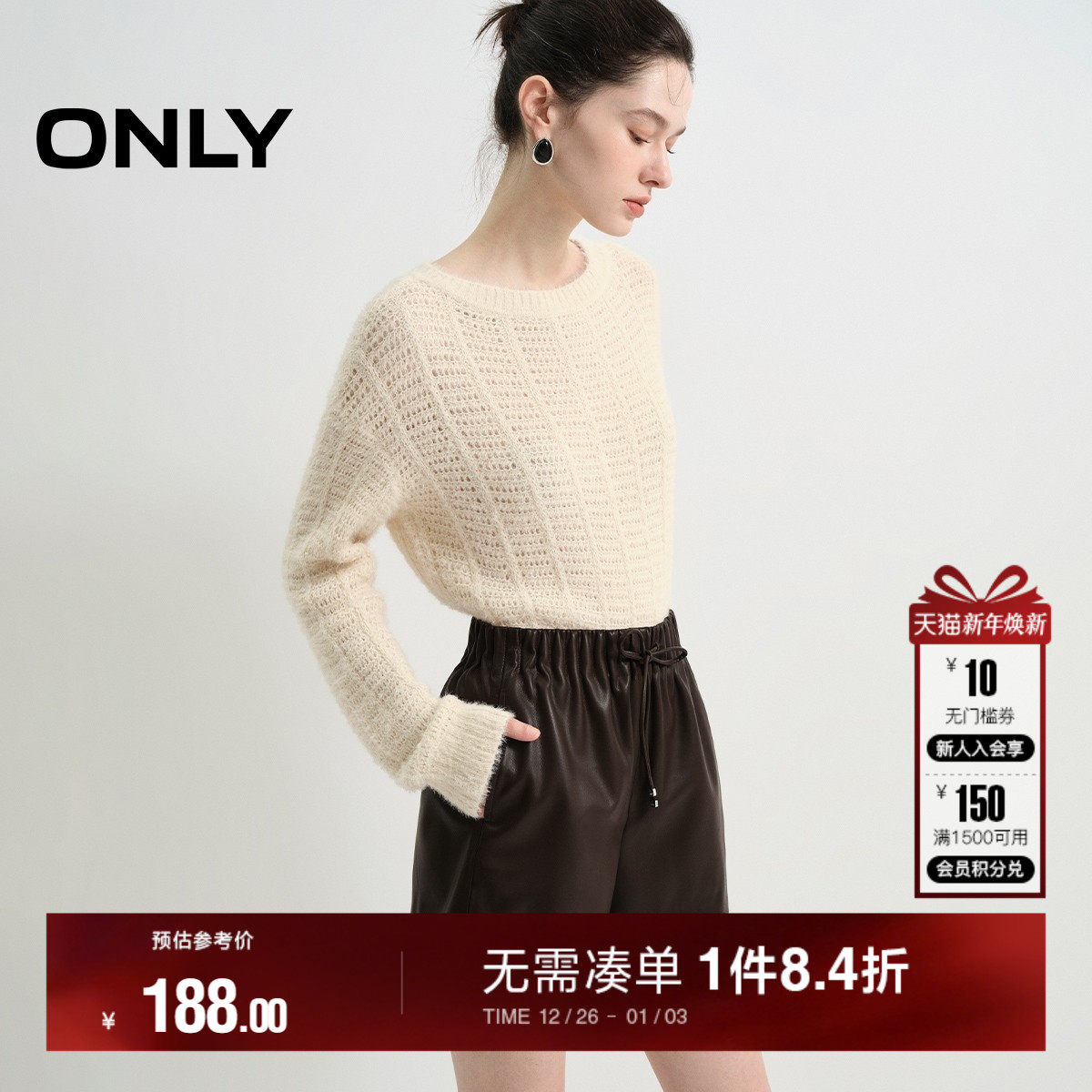 ONLY冬季含绵羊毛慵懒风圆领落肩长袖针织衫女|124413044