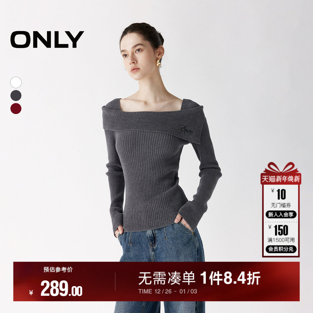 【达人推荐】ONLY2025冬季新款露肩一字领两穿纯色修身打底针织衫