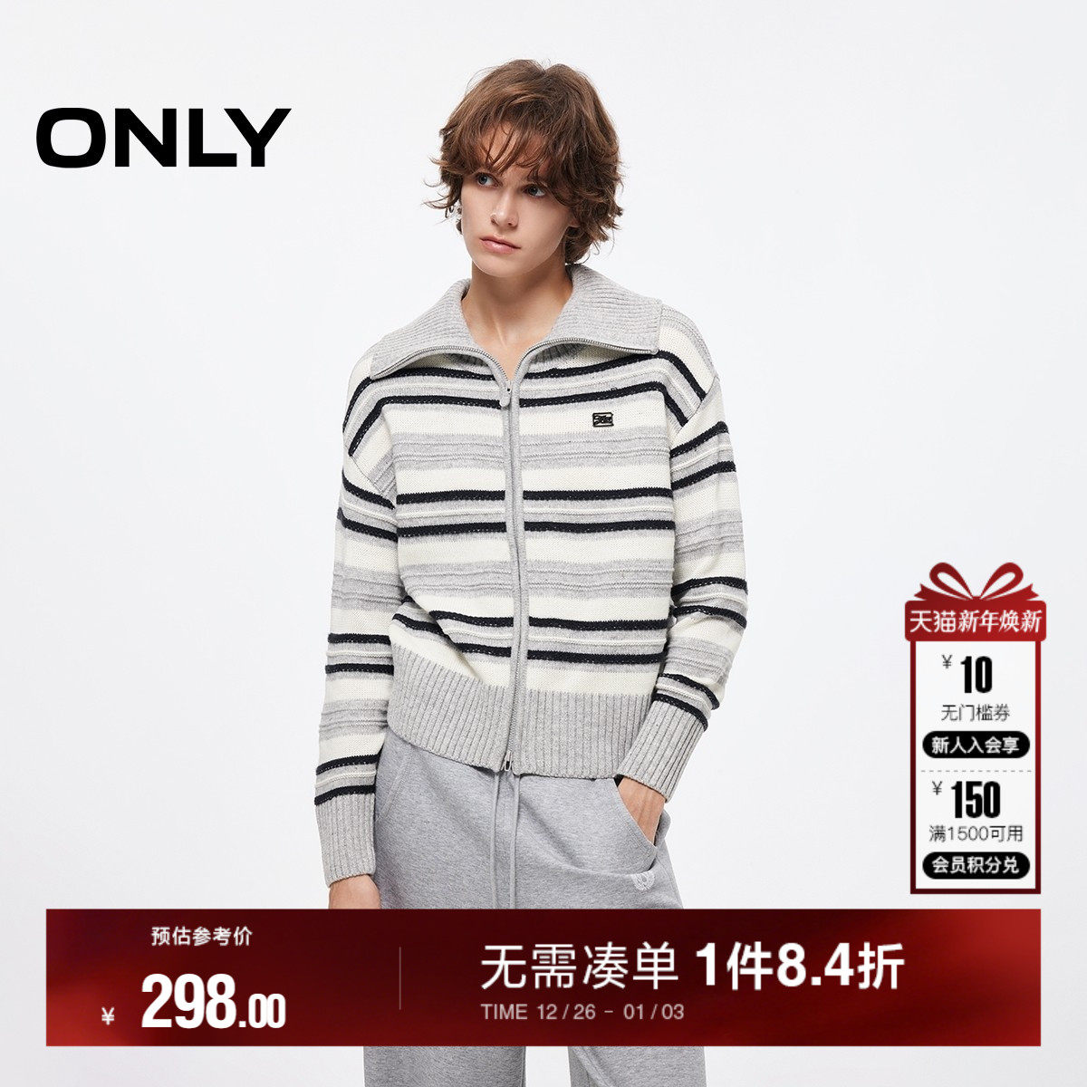【NBA联名】ONLY2025冬季新款双向拉链正肩直身撞色条纹针织衫女