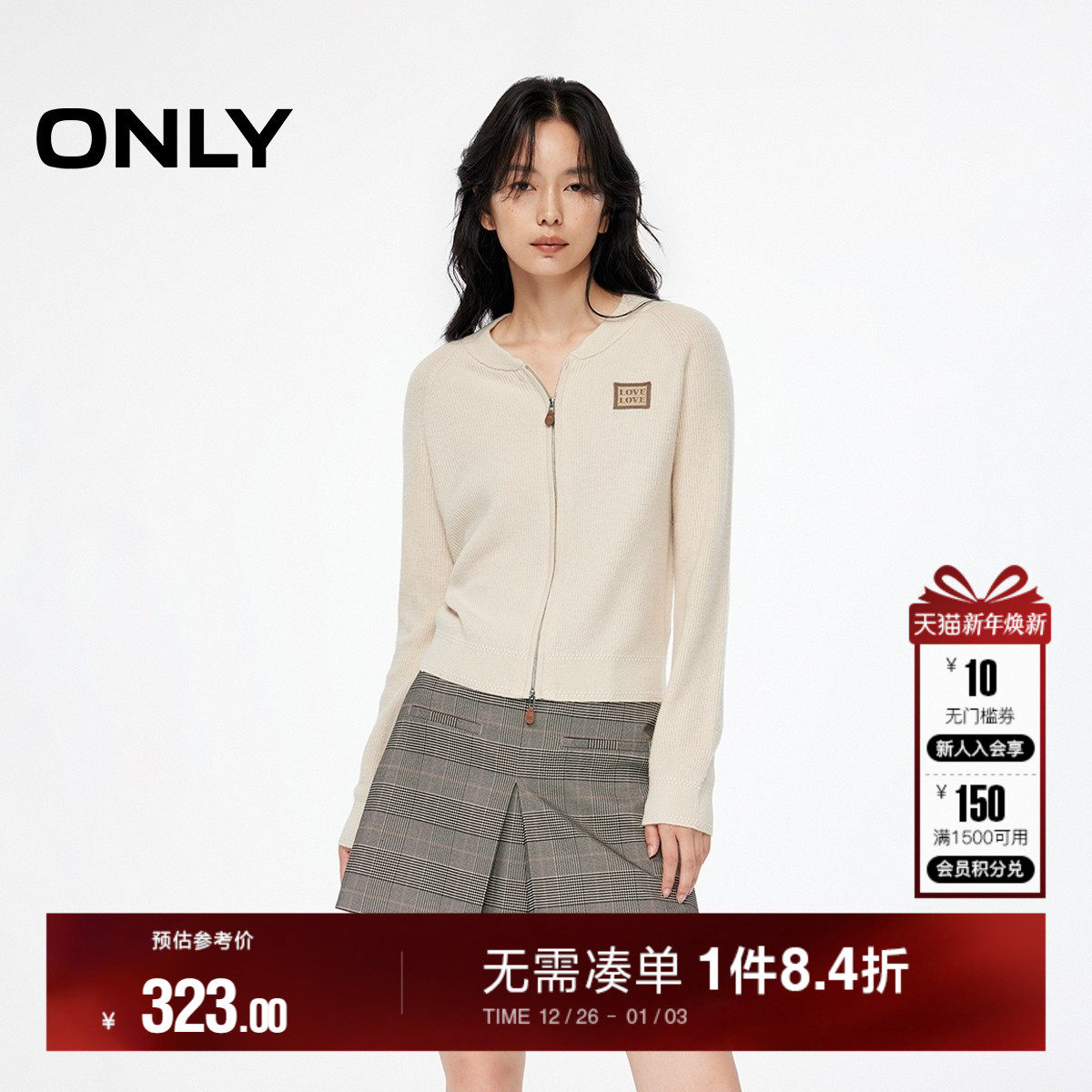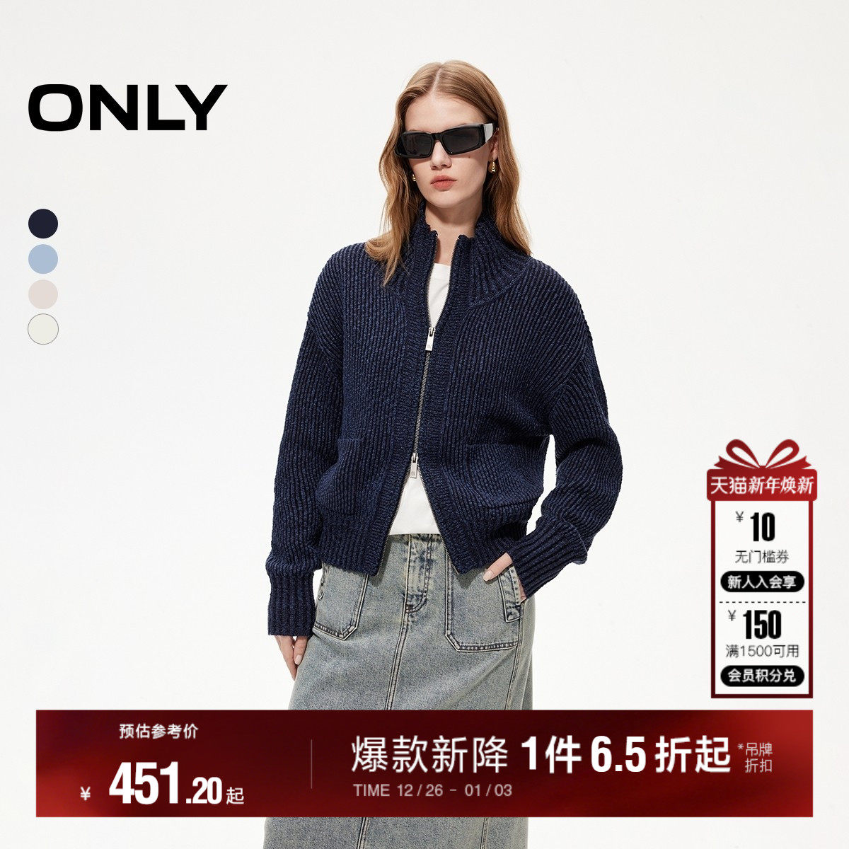 ONLY2025冬季新款质感双向拉链挺阔密织面料舒适亲肤纯色针织衫女