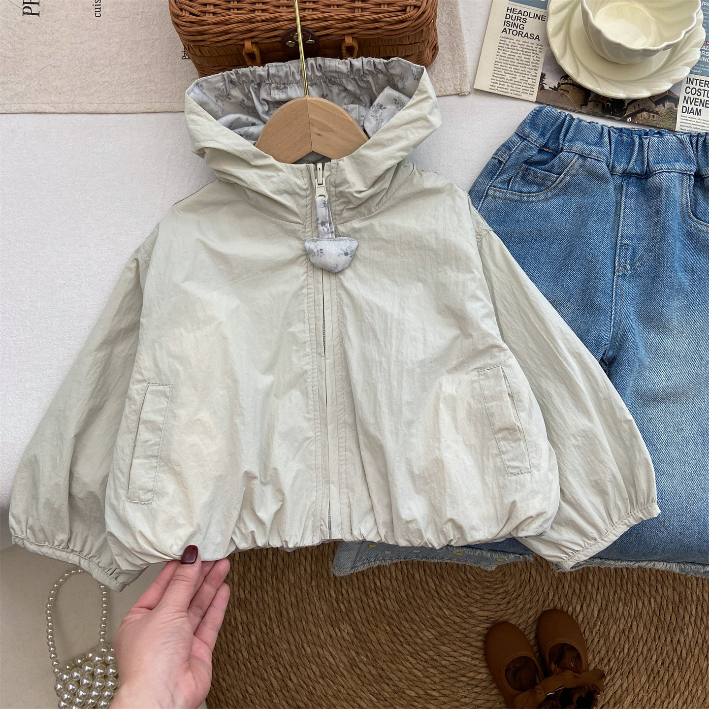 女童春装外套宝宝韩版洋气春秋季两面穿碎花上衣拉链开衫连帽风衣