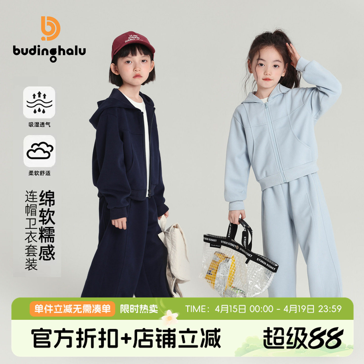 半度闲儿童春装运动外套洋气中大童2026新款男女童春秋款连帽上衣