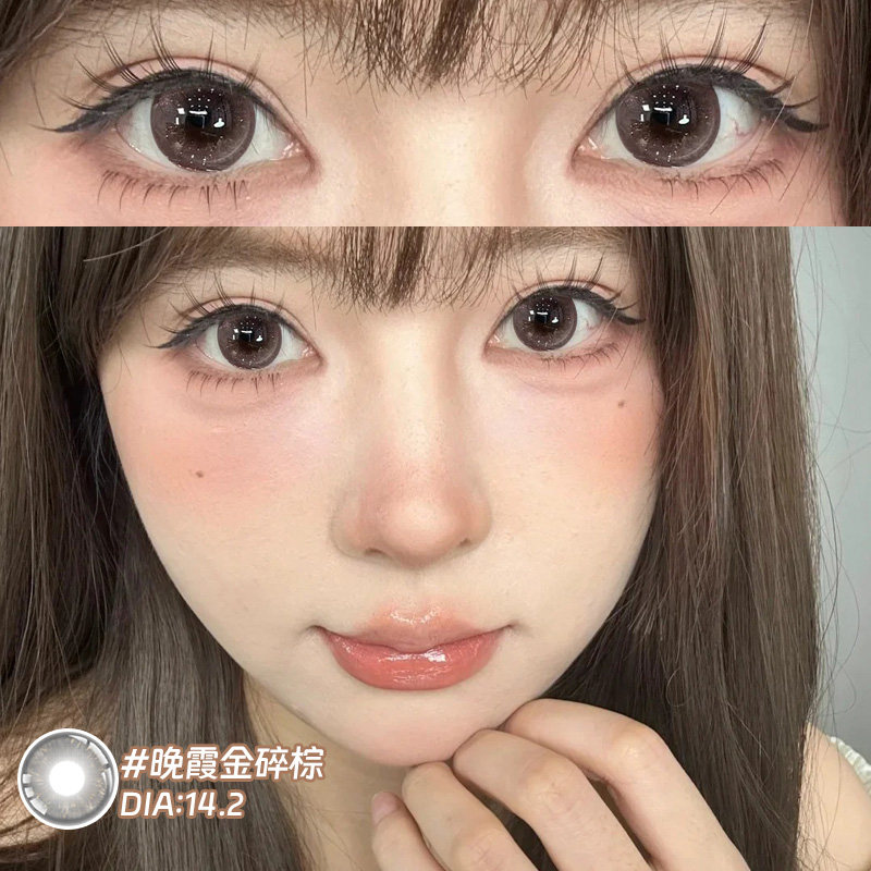 两片装】晚霞金碎棕美瞳2片装半年抛正品混血官网隐形眼镜EJLK