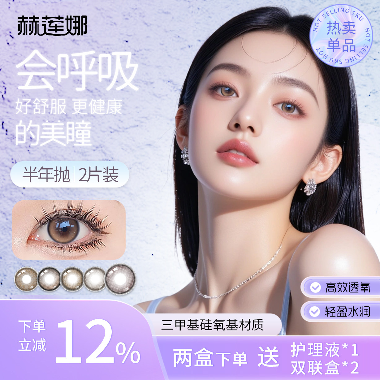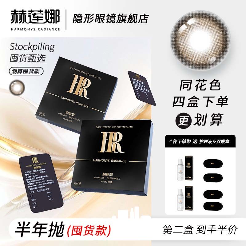赫莲娜美瞳半年抛正品轻奢两片装镜片医用水润混血透明片正品官方