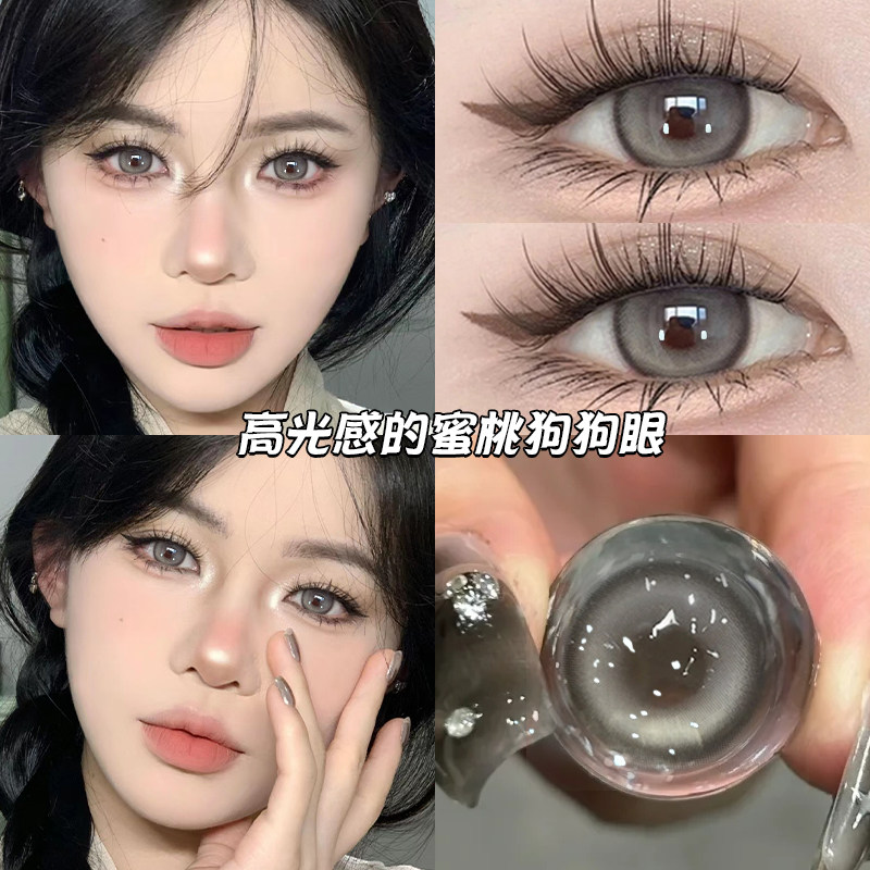 奶冻咖啡美瞳年抛女两片装大直径棕色混血狗狗眼近视隐形眼镜DTB