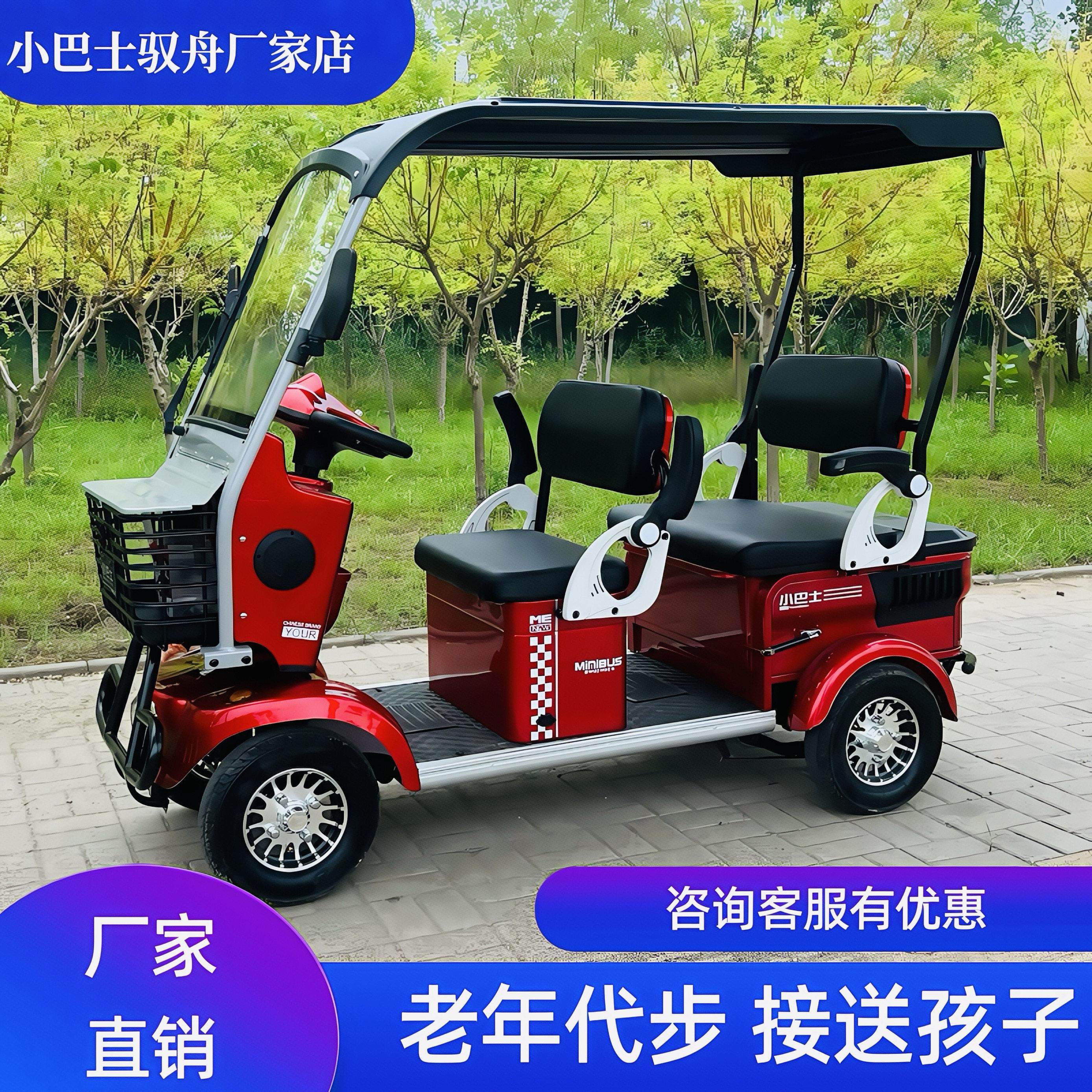 带雨棚新款老年代步车四轮电动车残疾人家用接送孩子小巴士观光车