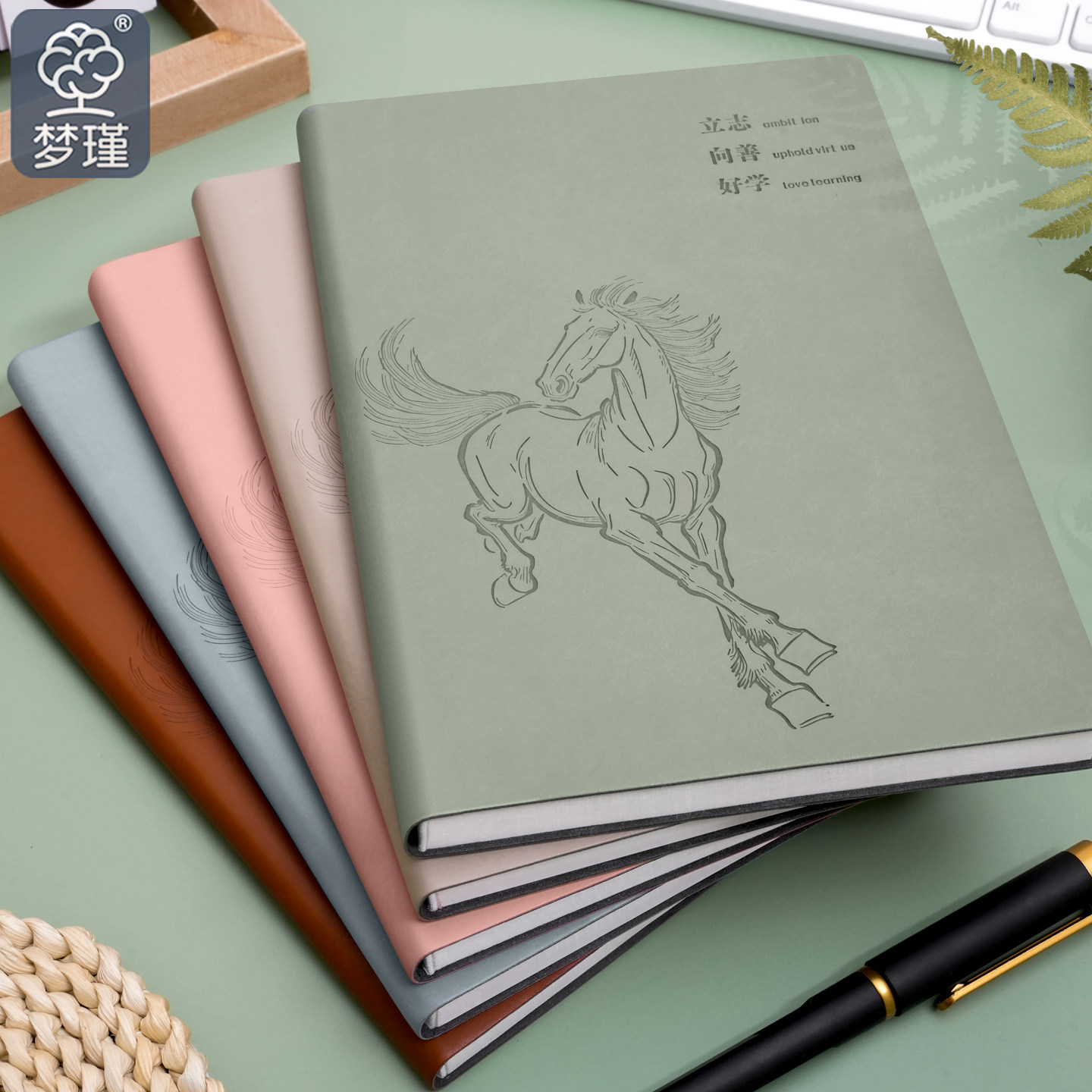 梦瑾新款马年笔记本本子高颜值皮面本励志压印封面学生专用日记本a5商务办公记事本子软皮面工作会议记录本子