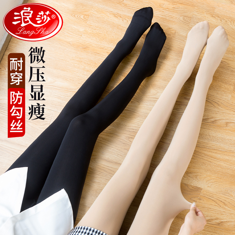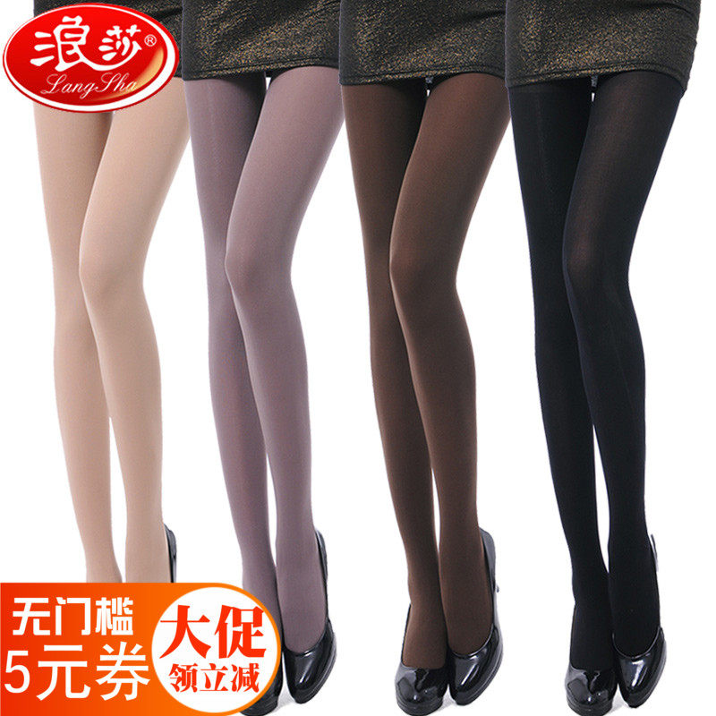 浪莎丝袜连裤袜女春秋季中厚防勾丝秋冬打底裤光腿黑肉色神器薄款