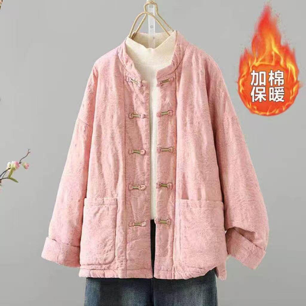 国风棉衣女冬新款民族风盘扣复古文艺夹棉外套宽松加厚中长款棉袄