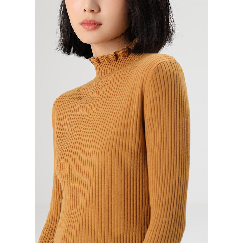 浅秋木耳边羊绒半高领美丽诺羊毛衫修身打底毛衣针织衫T7074