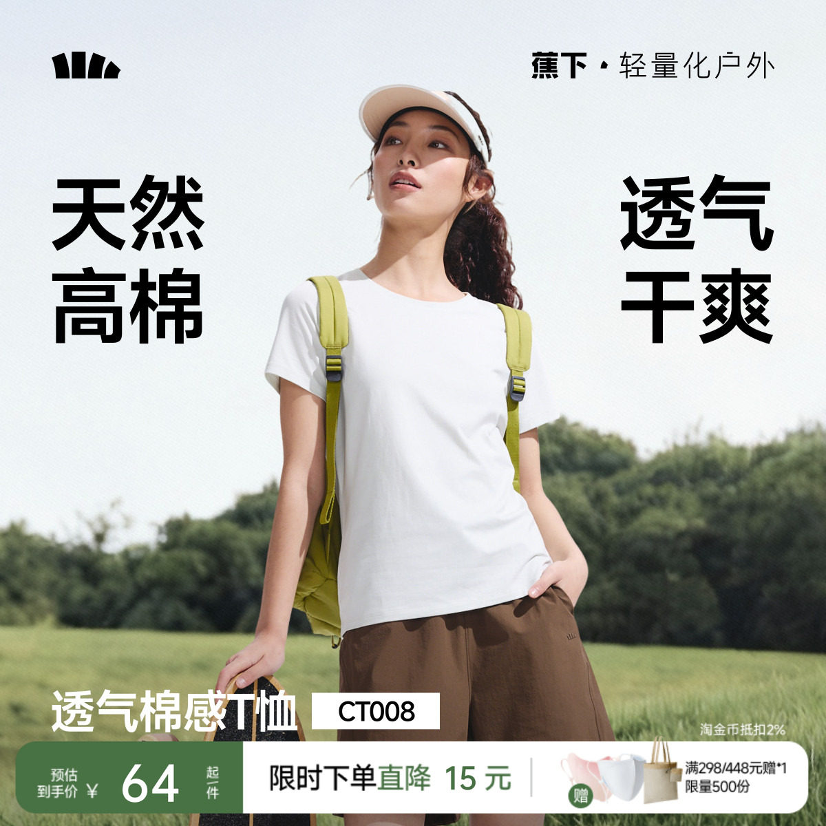 蕉下女士棉质宽松T恤女短袖户外春夏透气徒步健身内搭户外打底衫