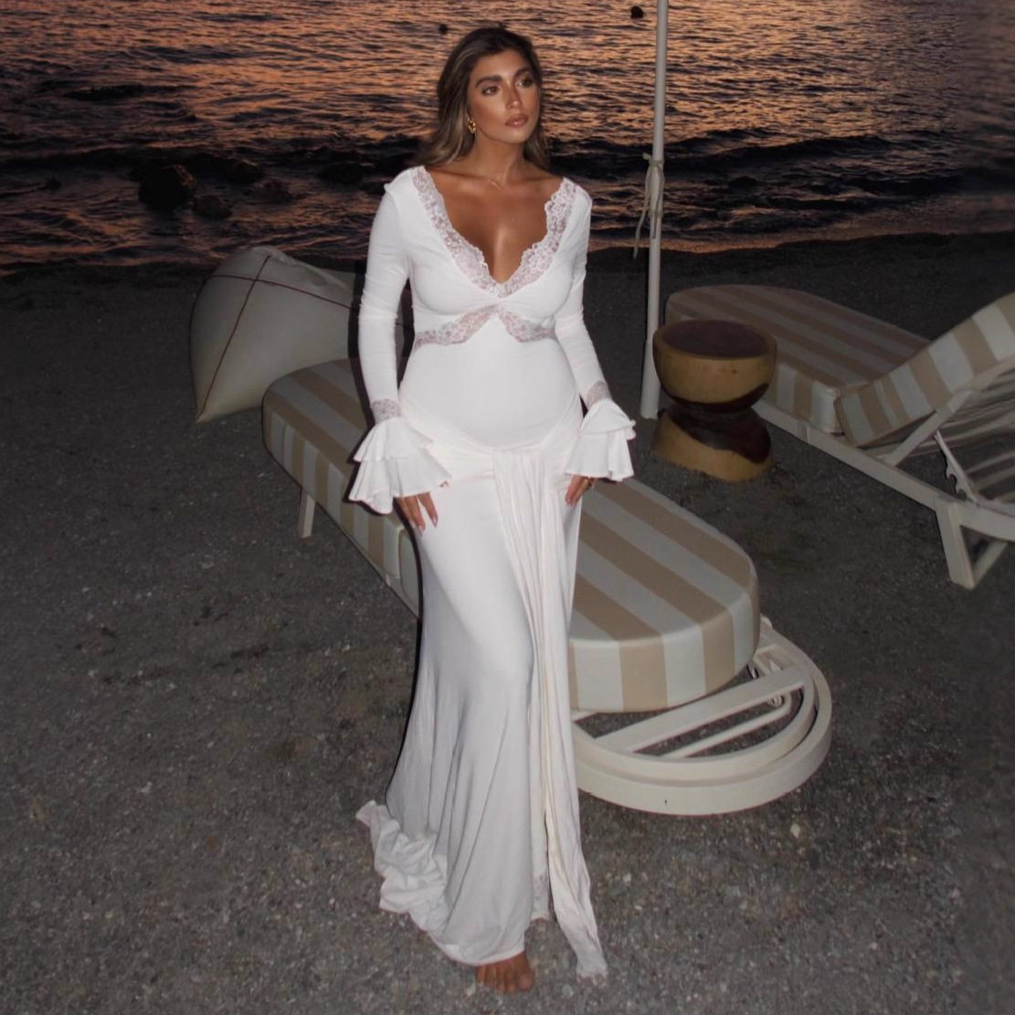 2025新款法式镂空蕾丝高腰连衣裙秋装时尚女装秋冬裙子百搭显瘦潮