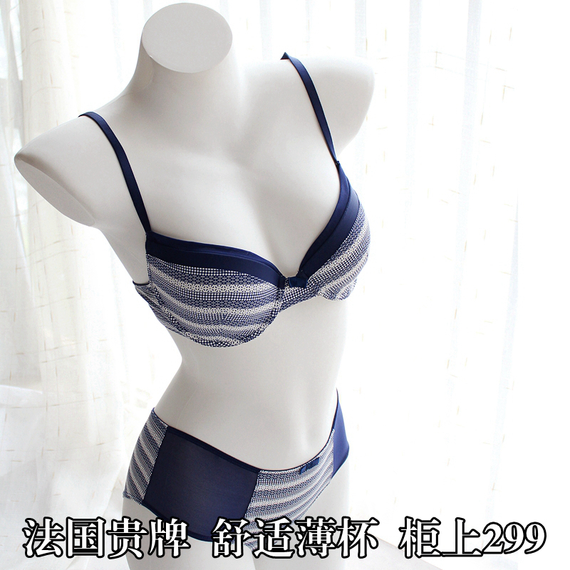出口法国贵货复古蓝色印花薄杯款性感舒适聚拢女文胸外贸欧美内衣
