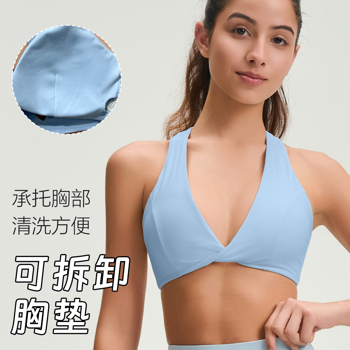 欧美瑜伽文胸女挂脖美背跑步健身内衣性感聚拢运动背心Bra高弹新