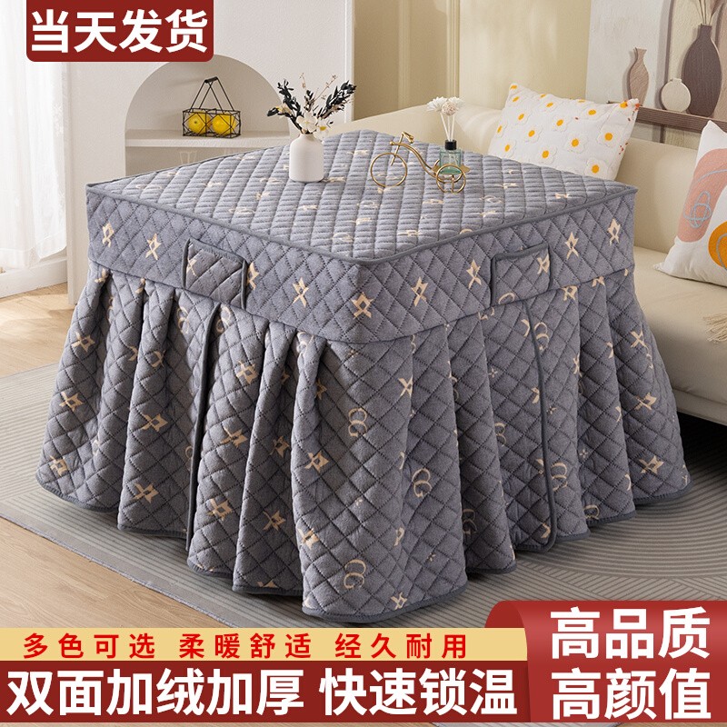 新款简约中古风桌布套正方长方形电暖炉烤火被子布套加绒加厚桌罩