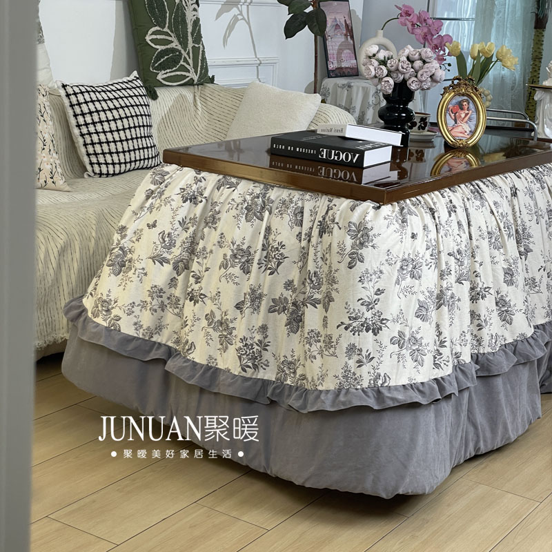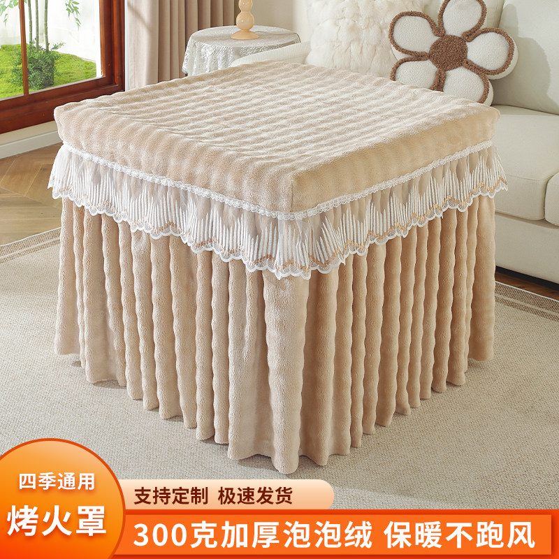 奶油风桌布烤火罩长方形火炉套罩取暖桌罩套冬季加绒加厚烤火被子
