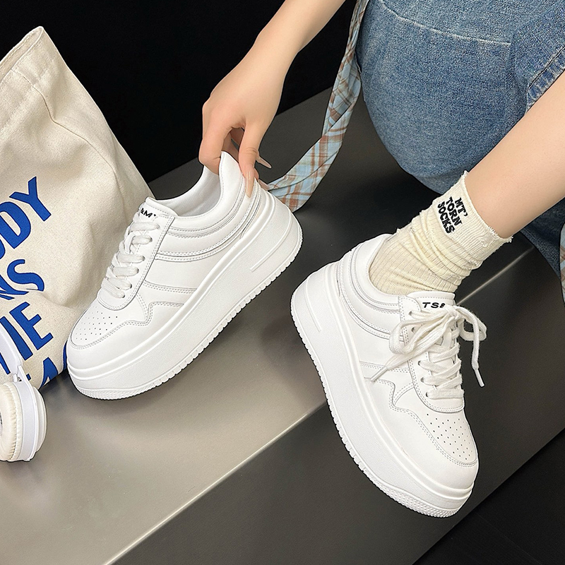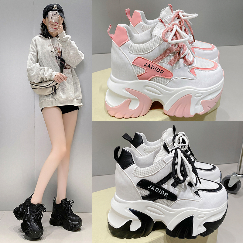 2025春秋韩版超高跟12CM内增高女鞋厚底松糕跟系带休闲运动鞋单鞋