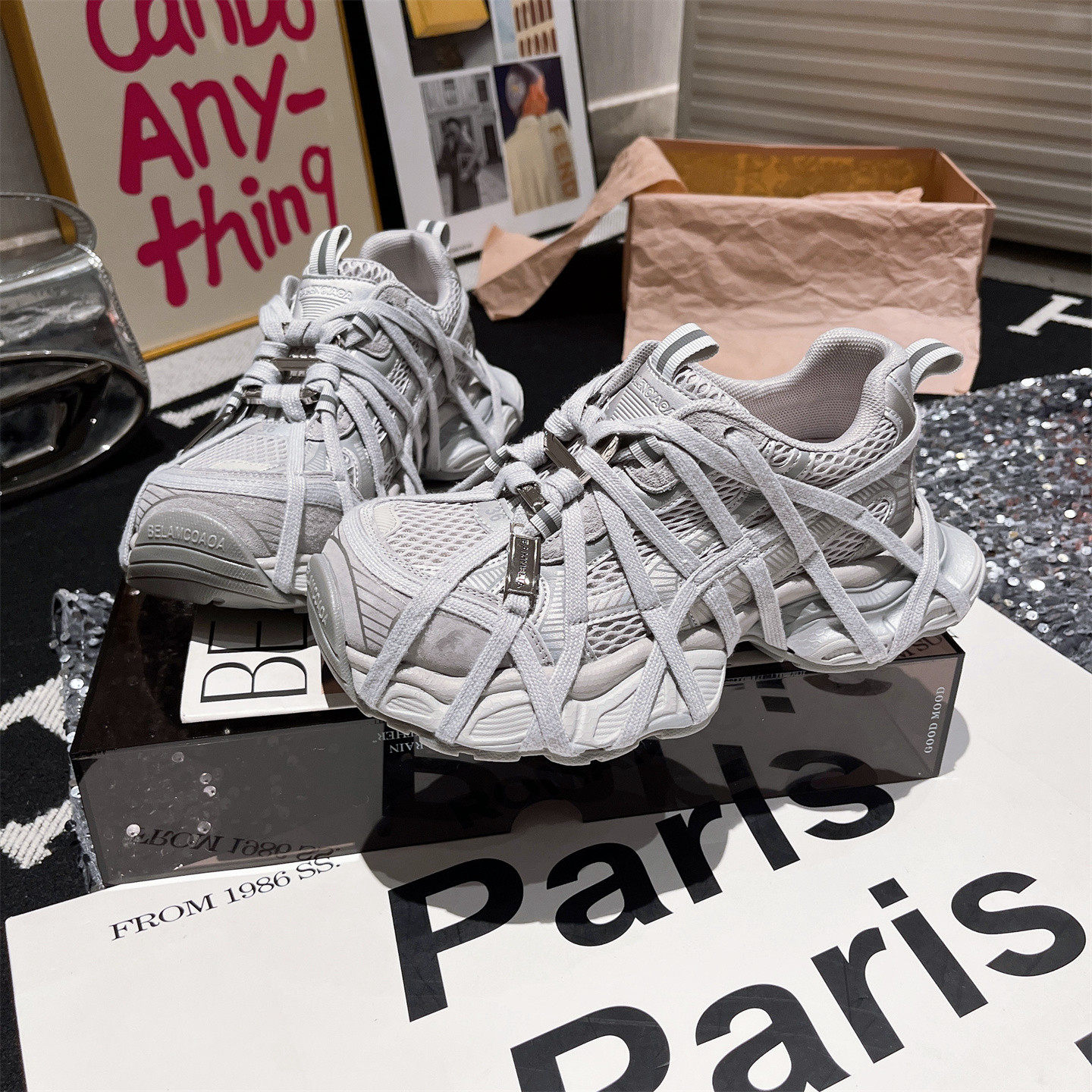 真皮版~韩版绑带蜘蛛侠厚底松糕老爹鞋运动鞋小个子擦色帅气女鞋