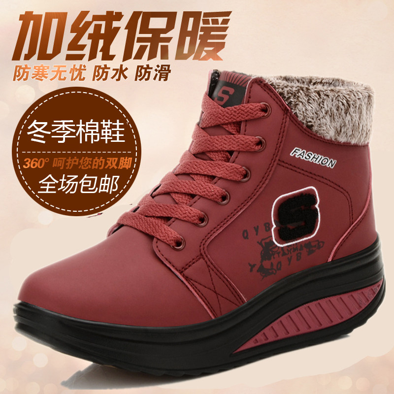 棉鞋女冬季保暖加绒女鞋高帮摇摇鞋厚底松糕鞋韩版加厚运动休闲鞋