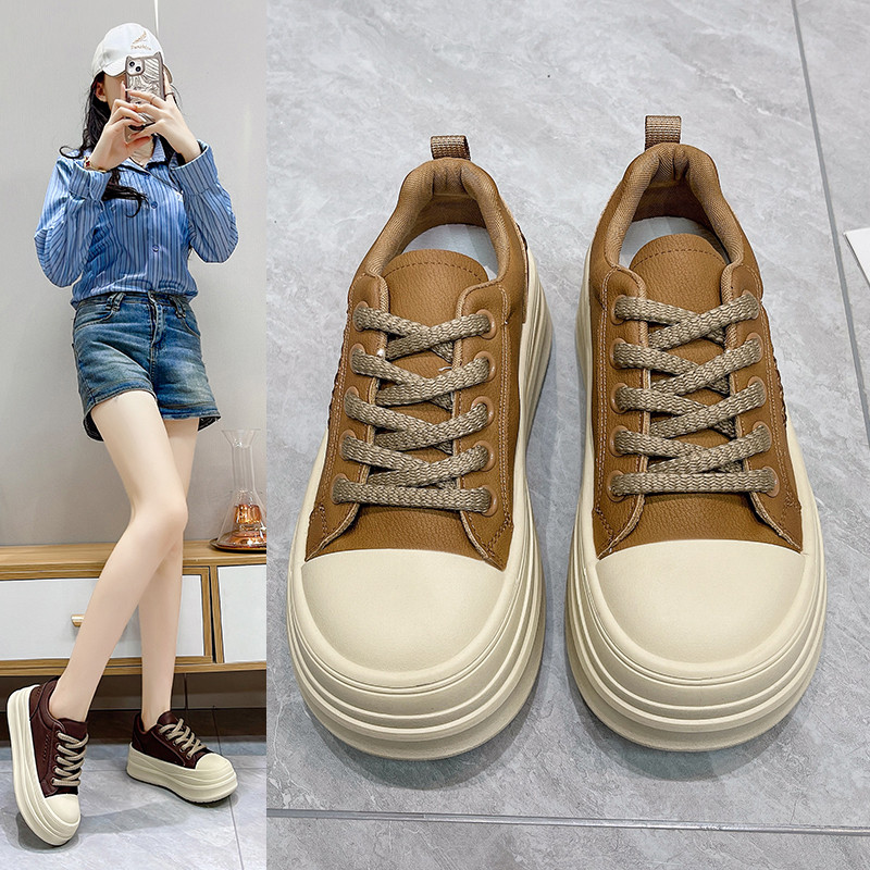 2026春季新款韩版厚底小白鞋女真皮松糕鞋百搭增高轻便休闲运动鞋