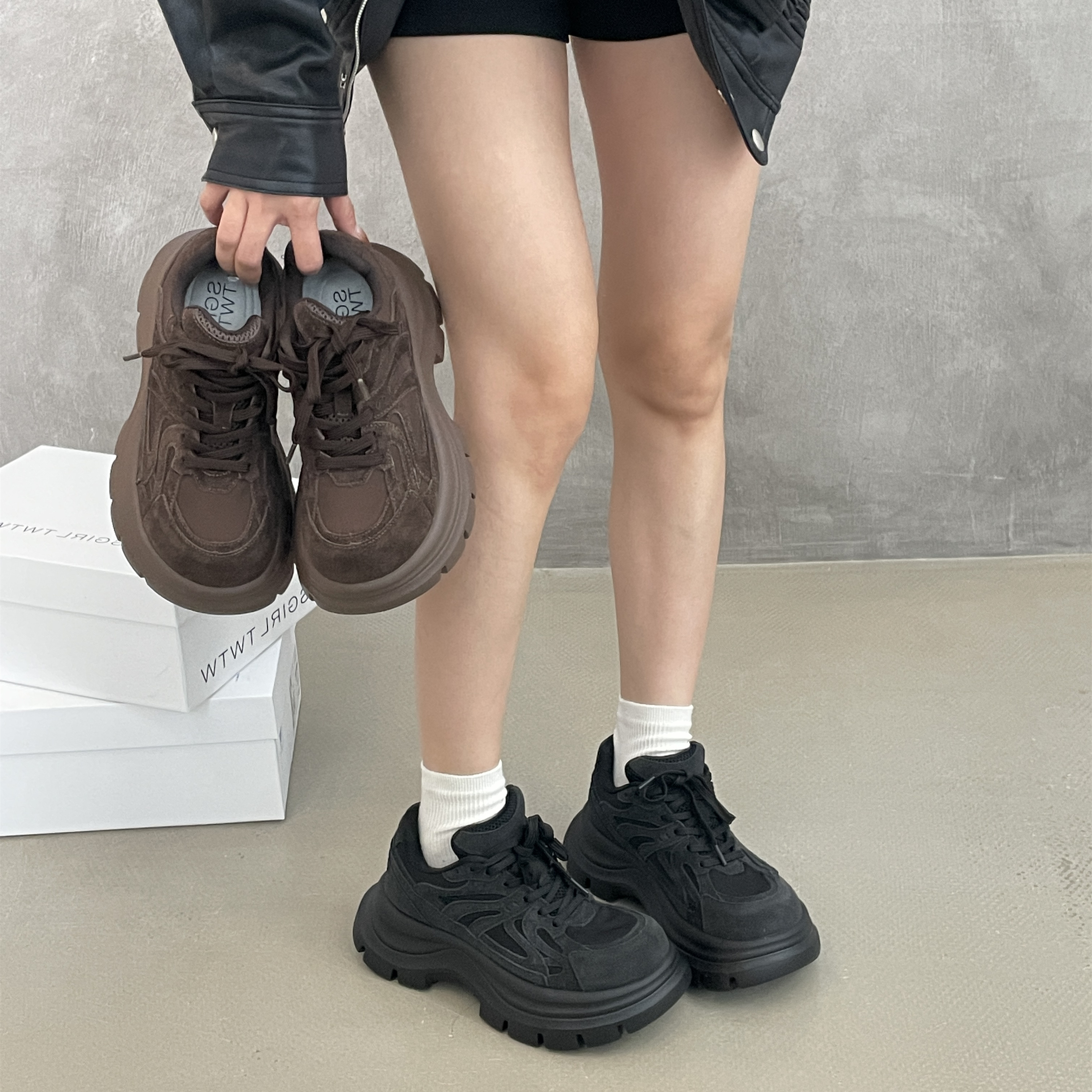 SGIRL TWTW韩版轻便厚底老爹鞋女时尚磨砂皮圆头松糕休闲运动鞋潮