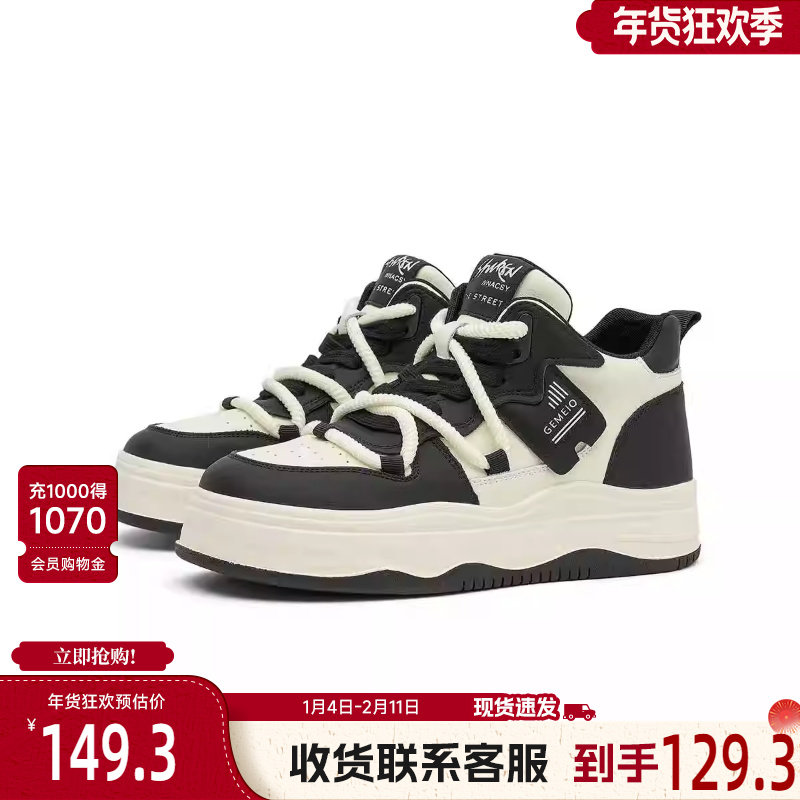戈美其真皮高帮板鞋女款舒适春季新款韩版百搭松糕厚底休闲运动鞋