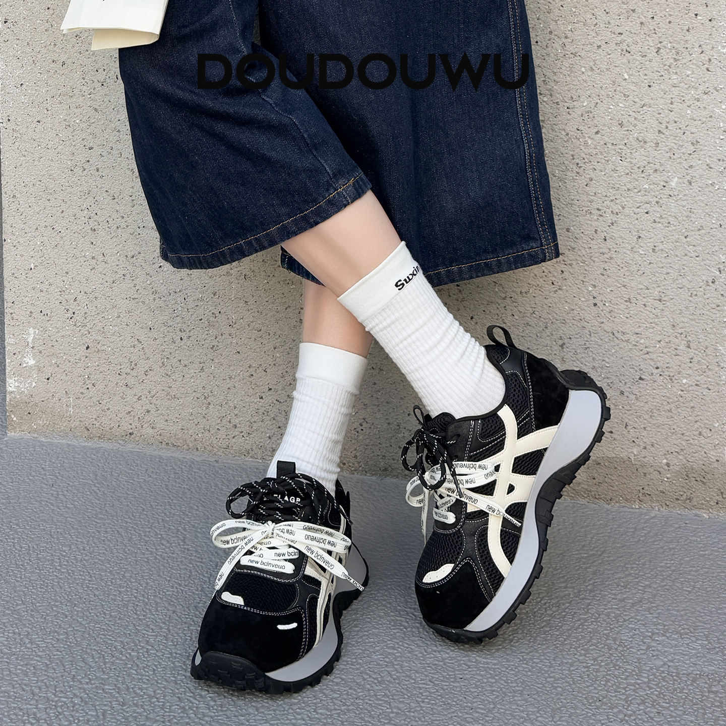 豆豆屋厚底老爹鞋女网面透气2025春夏新款韩版潮运动休闲松糕女鞋