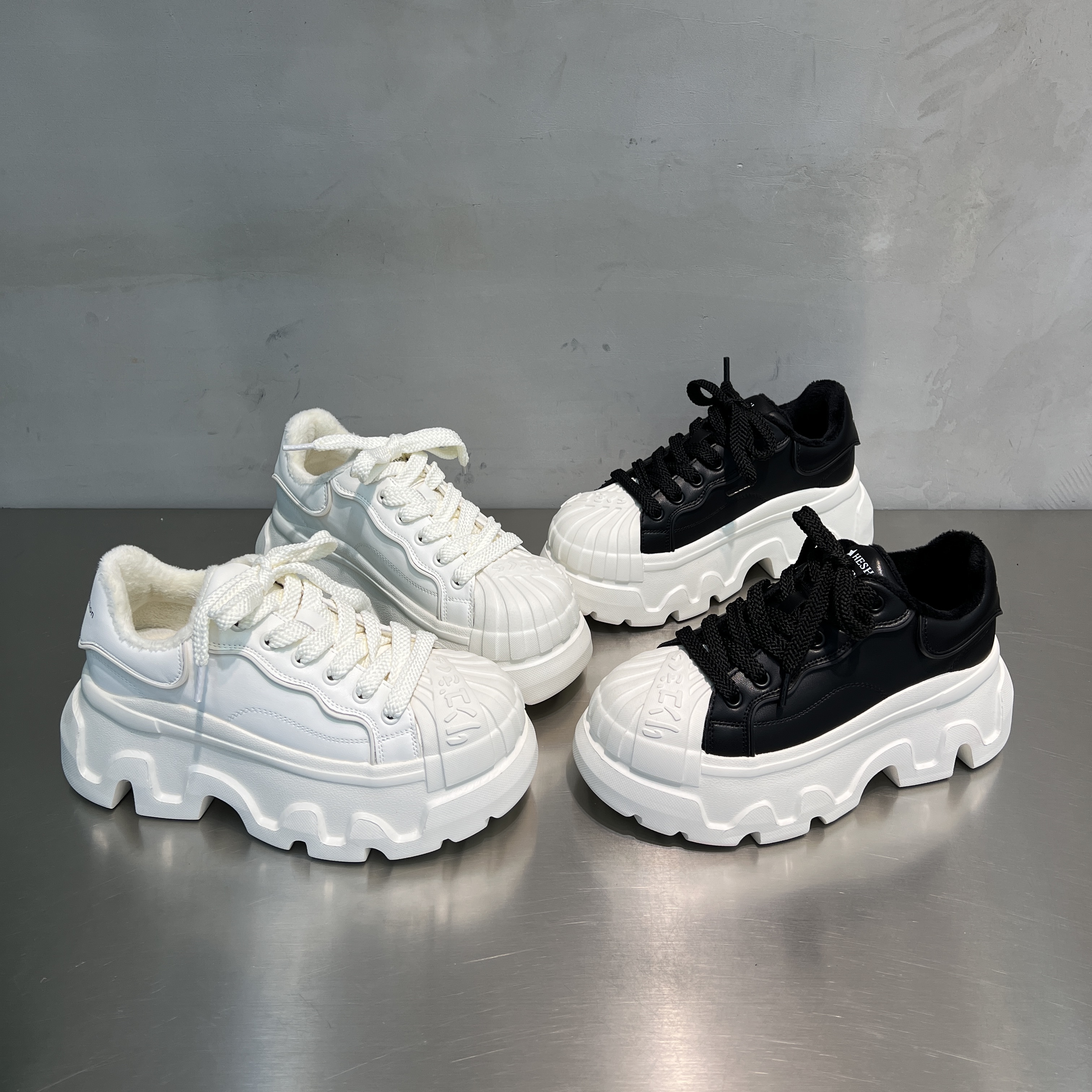 奶白松糕小白鞋女厚底秋季新款chic小众韩版丑萌面包鞋运动板鞋子