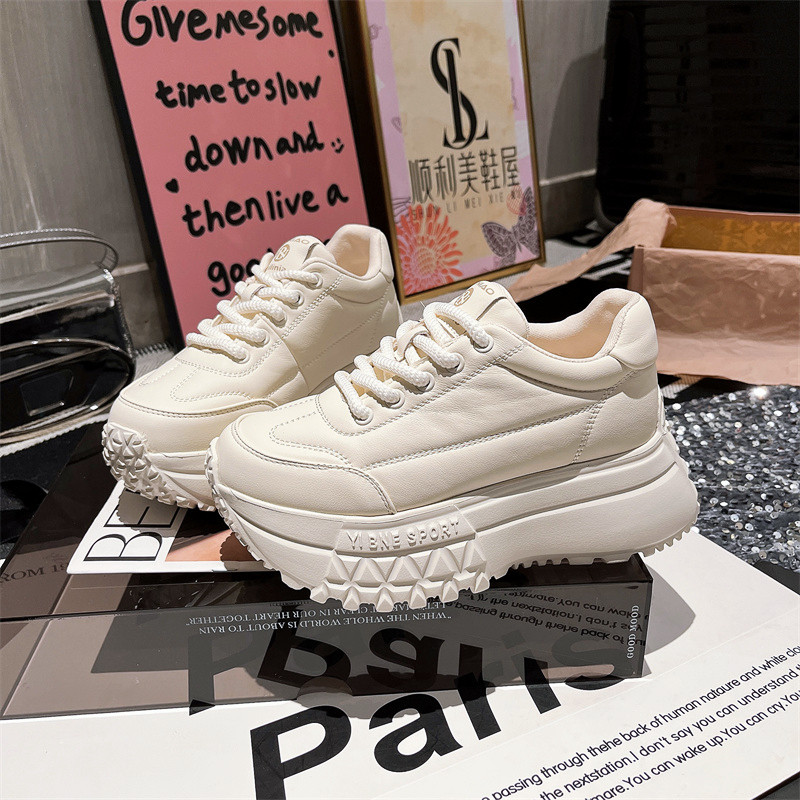 韩版真皮厚底松糕小个子6cm增高老爹鞋运动超轻底小白鞋休闲女鞋