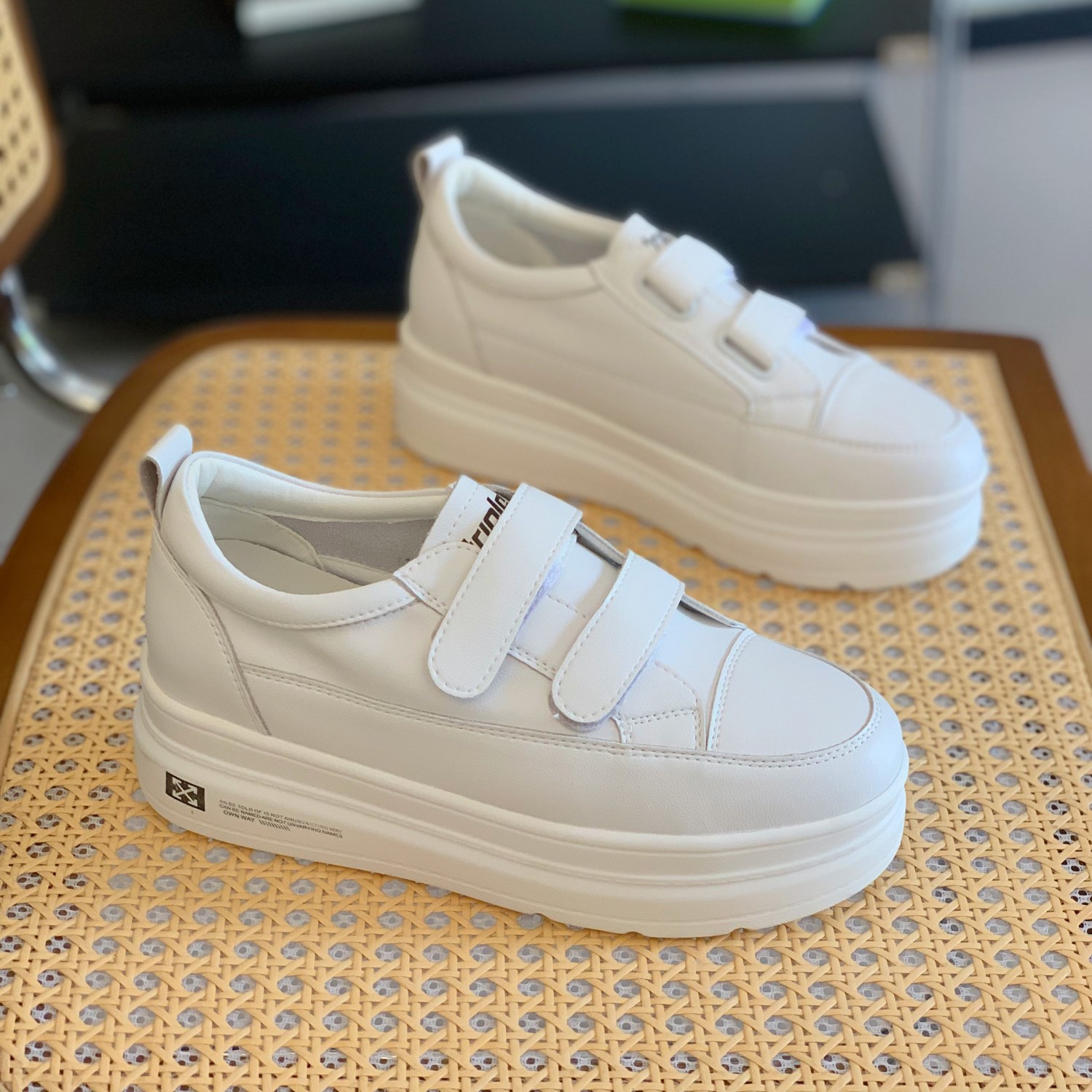 魔术贴松糕厚底真皮小白鞋女2025秋季新款韩版百搭小个子运动板鞋