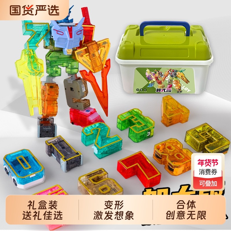 儿童益智力动脑玩具男孩拼装变形数字合体机器人积木亲子互动玩具