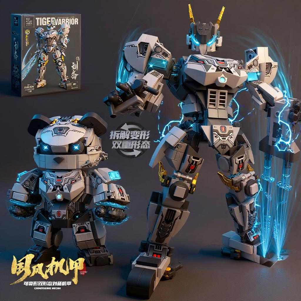 2026新款熊猫幻影青龙白虎朱雀机甲机器人积木黑拼装玩具男孩礼物
