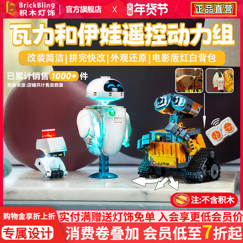 适用于乐高遥控马达动力组迪士尼43279瓦力和伊娃机器人积木灯光