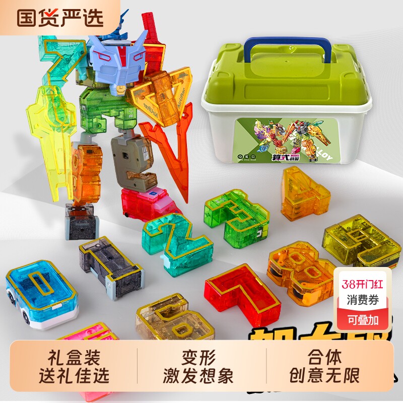 儿童益智数字变形玩具男孩3到6岁5拼装合体机器人7积木13生日礼物