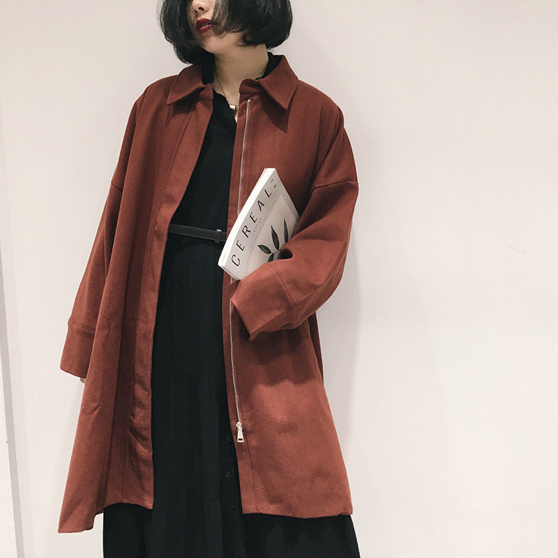 短款风衣女矮小个子砖红色休闲外套2021K新款春秋中长款宽松大衣