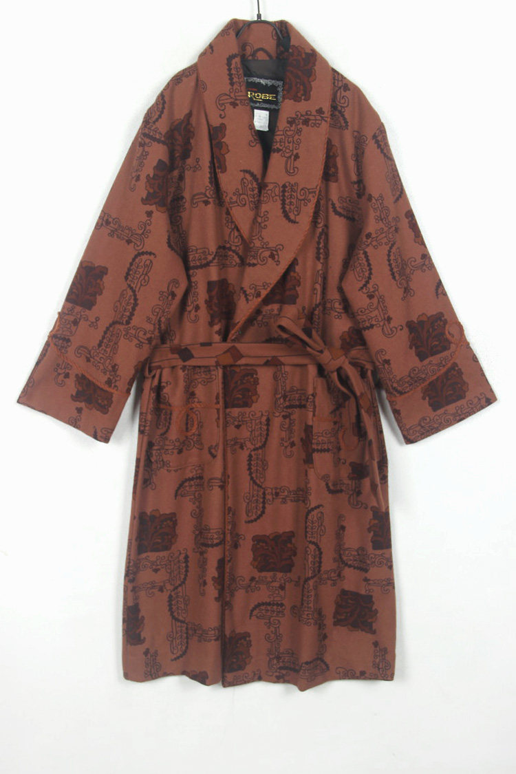 秋冬装孤品复古古着vintage砖红色民族风印花睡袍款毛呢大衣外套