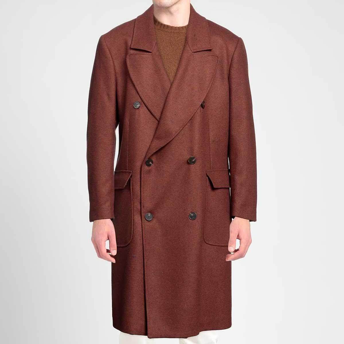 西里布砖红色灯芯绒双排扣中长款西服大衣男美式复古条绒风衣外套