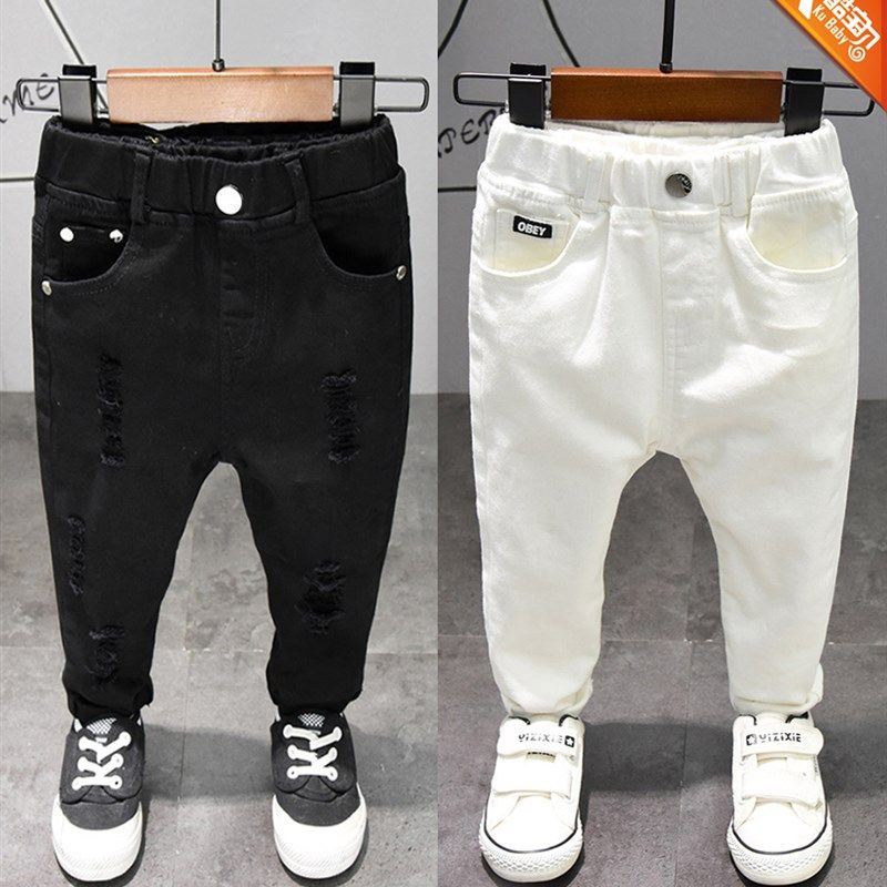 男童裤子2025春秋款破洞休闲小脚紧修身白色潮装韩版中大儿童长裤