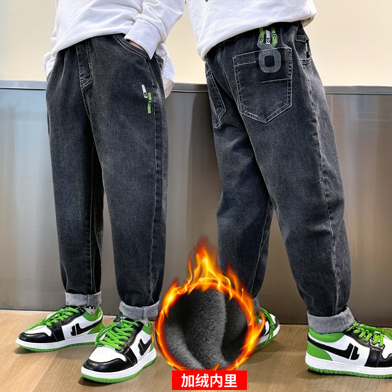 童装男童加绒牛仔裤秋冬款休闲长裤中大童裤子洋气修身儿童新潮款
