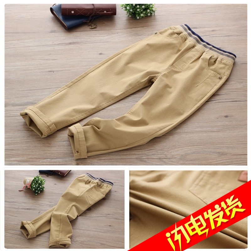 男童卡其色休闲裤秋季小学生弹力小脚长裤松紧腰修身演出儿童校裤