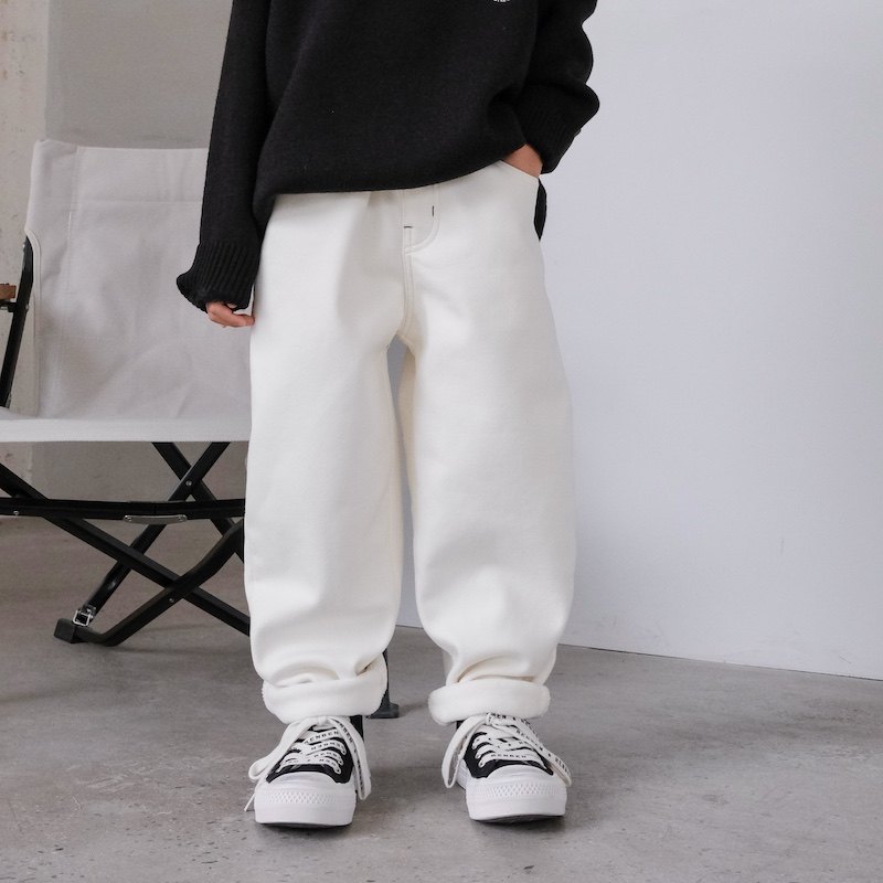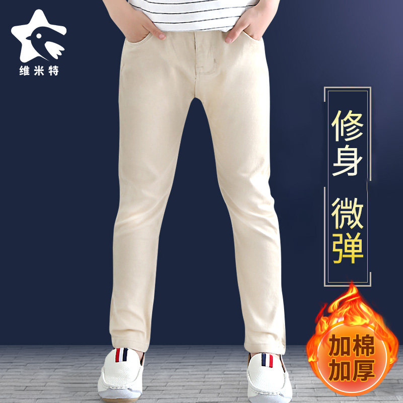 男童白色裤子秋冬修身烟管裤中大童洋派百搭休闲 裤儿童加绒长裤