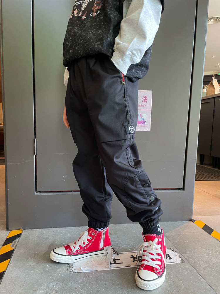 男童黑色工装裤子港风大口袋小脚修身休闲2025春秋宝宝儿童长裤潮