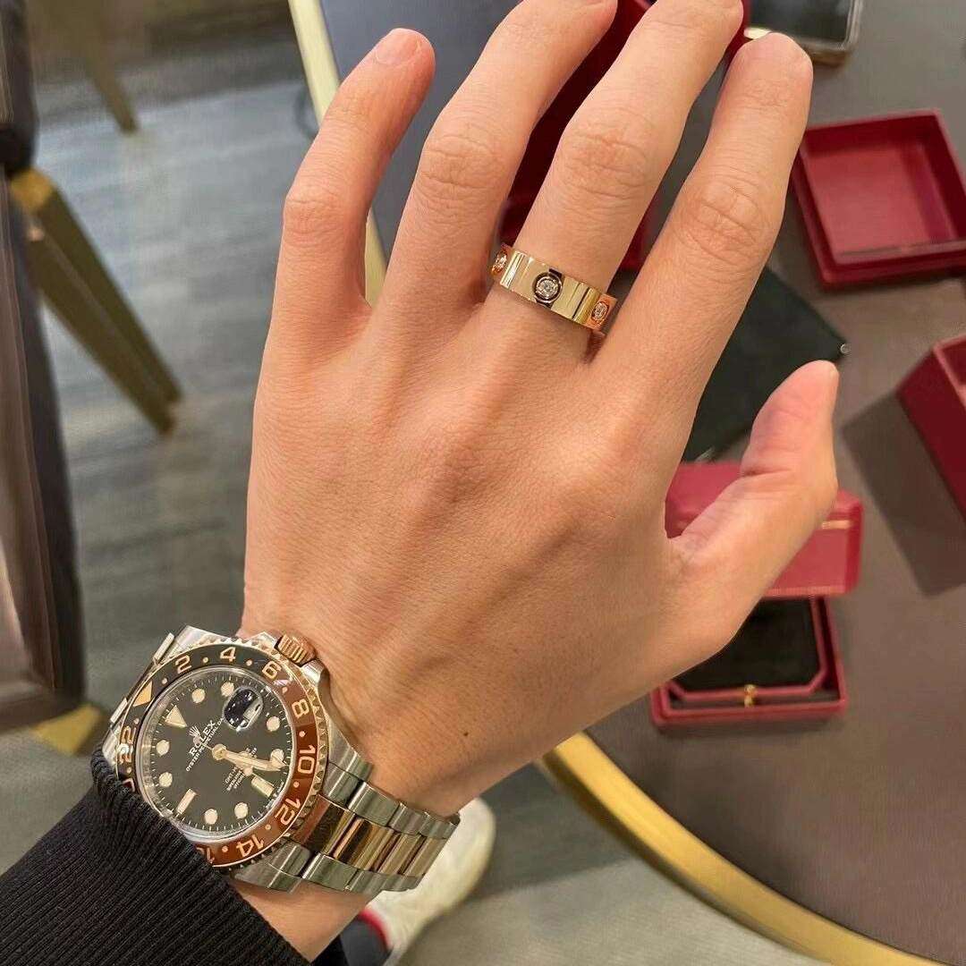 18K金戒指女AU750玫瑰金戒指高定LOVE经典款男士情侣对戒送女友