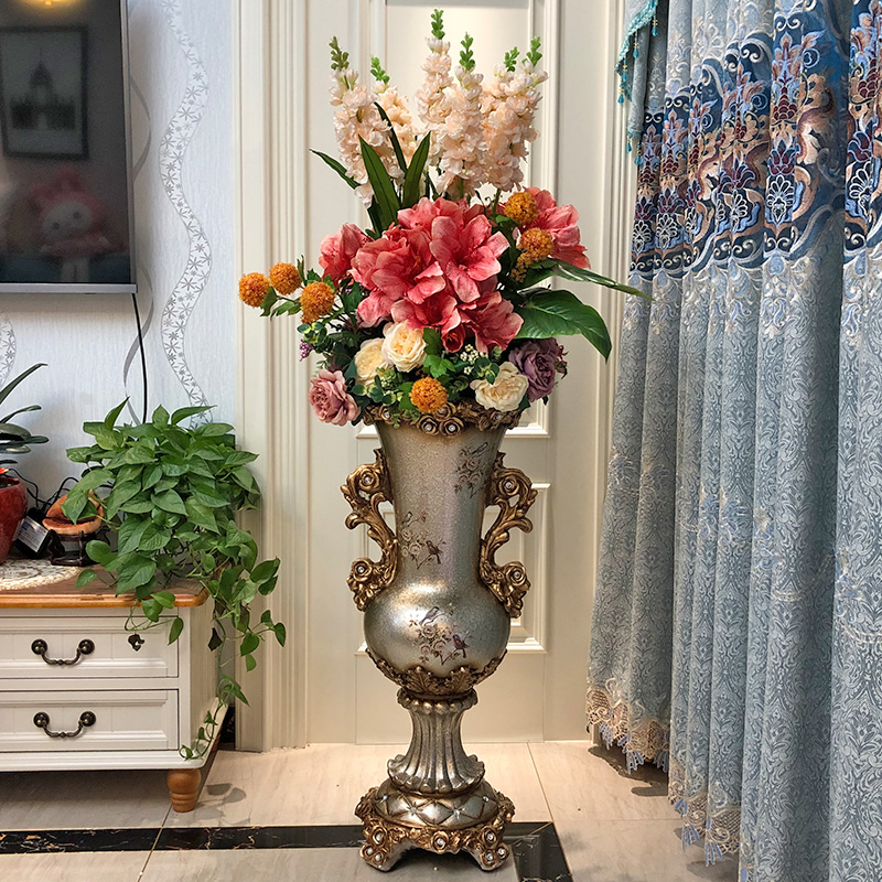 欧式落地大花瓶 仿真花艺套装 客厅装饰摆件美式家居饰品插花摆设