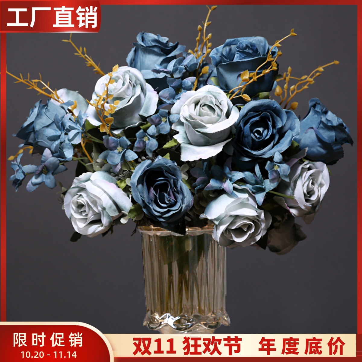 欧式桌面装饰仿真花摆件花瓶花艺 婚礼长桌布置桌花商业摄影假花