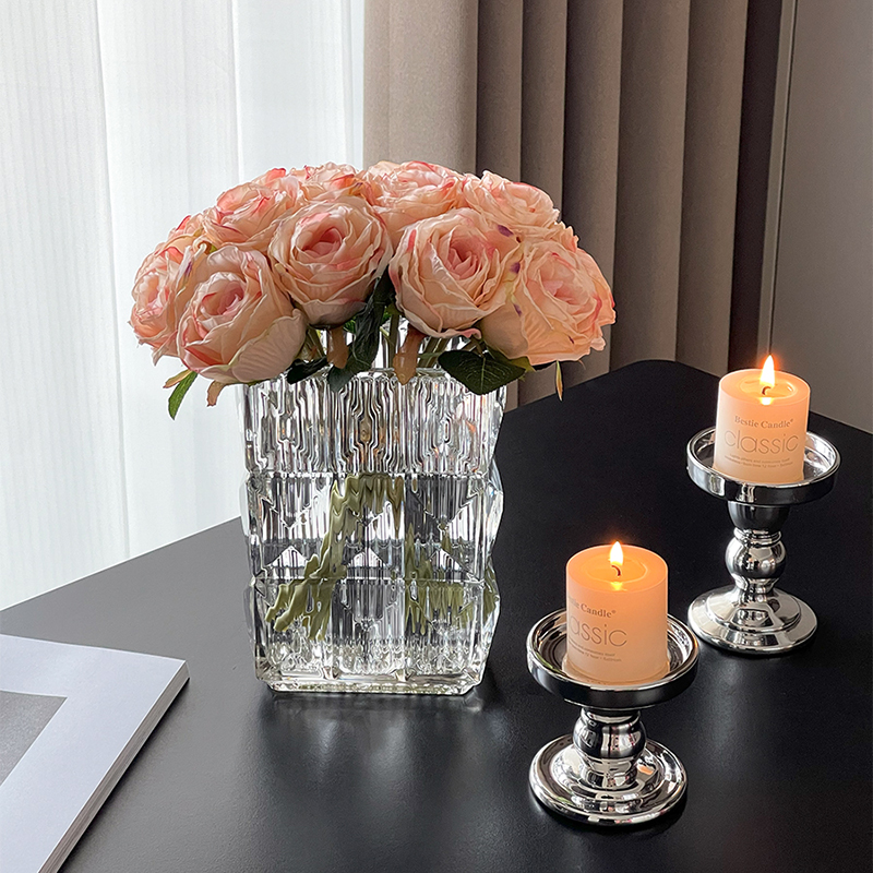 欧式简约轻奢高级感玻璃花瓶水晶鲜花仿真花客厅餐桌插花装饰摆件