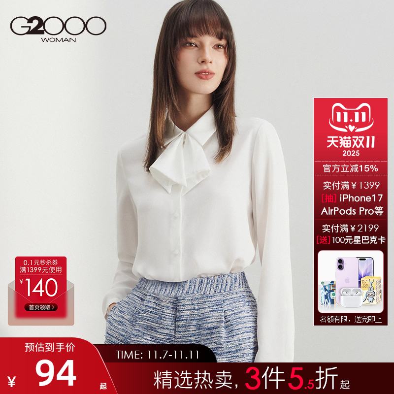 【肌理感/可拆领结】G2000女2025春秋商场同款垂感休闲长袖衬衫.