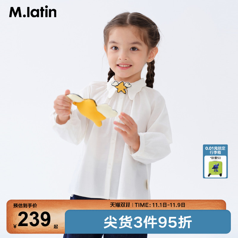 小童木 复古学院感领结女童牛仔衬衫秋装2025新款女大童长袖上衣
