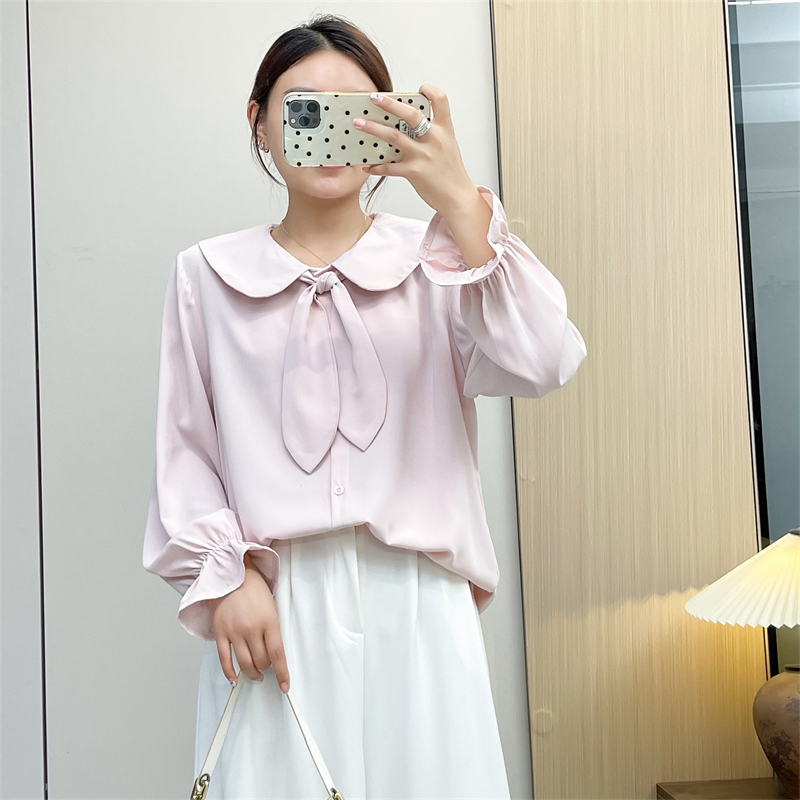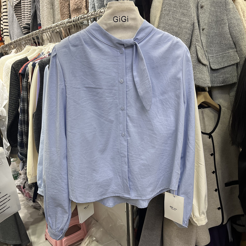 清仓捡漏品牌折扣店专柜女装领结衬衫女长袖春秋百搭减龄雪纺上衣